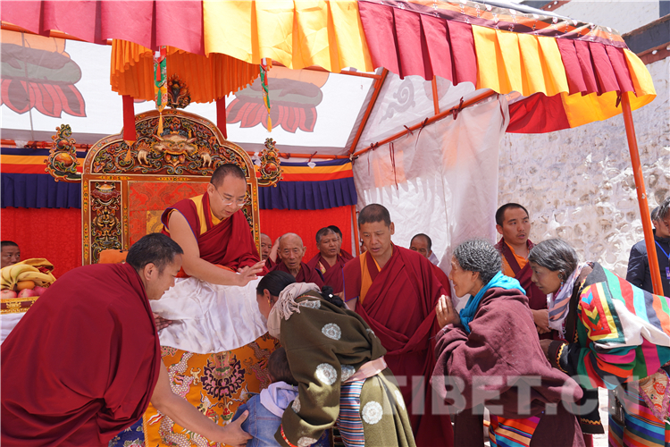得知十一世班禅要来,草原上的信教群众把家中最华贵的衣服都穿在了身上。摸顶中,有信众请十一世班禅吹一吹眼睛或抚摸伤痛处,十一世班禅总会尽心满足。