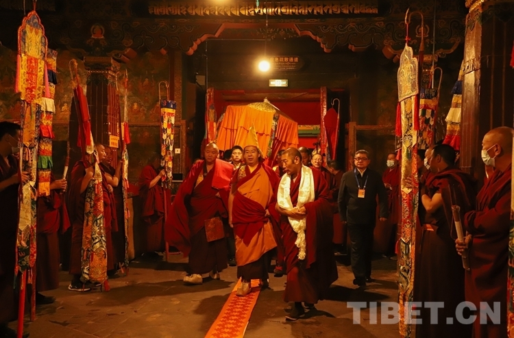 5时30分,班禅一行抵达大昭寺。顿时,法号齐鸣、法螺合奏。伴着僧人浑厚的诵经声,在手持香炉的高僧和吹唢呐的僧人引路下,班禅步入大昭寺,逐一朝拜寺内各殿堂。