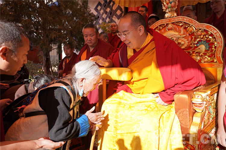 中国西藏网讯 11月13日至14日,全国政协常委、中国佛教协会副会长、中国佛协西藏分会会长班禅额尔德尼•确吉杰布在西藏日喀则市扎什伦布寺多加大院为信教群众摸顶赐福,这是近年来规模最大的一次班禅摸顶赐福活动。图为班禅摸顶赐福 摄影:王淑(中国西藏网 记者/王淑 贾华加)