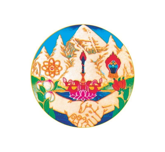 图为十世班禅大师亲自设计并请画家洛松向秋付诸笔端的援助西藏发展基金会徽标。