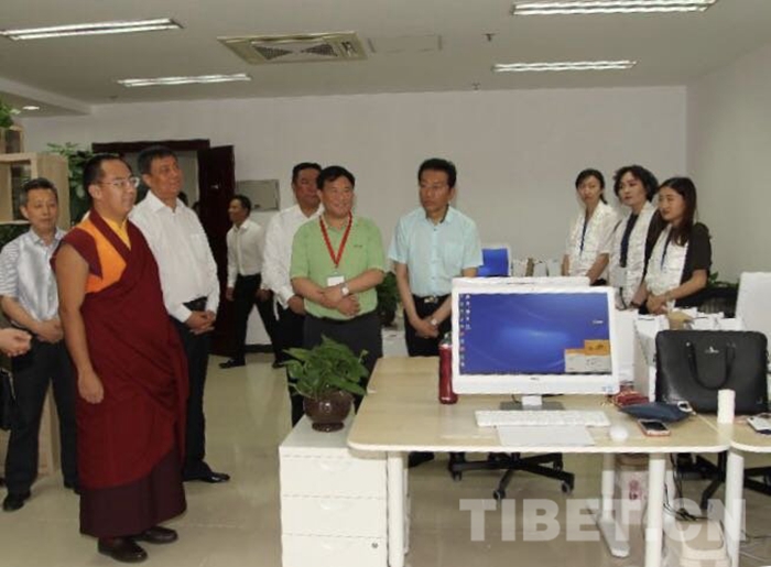 图为2018年6月6日,援助西藏发展基金会理事长十一世班禅大师在北京办公室现场指导工作。