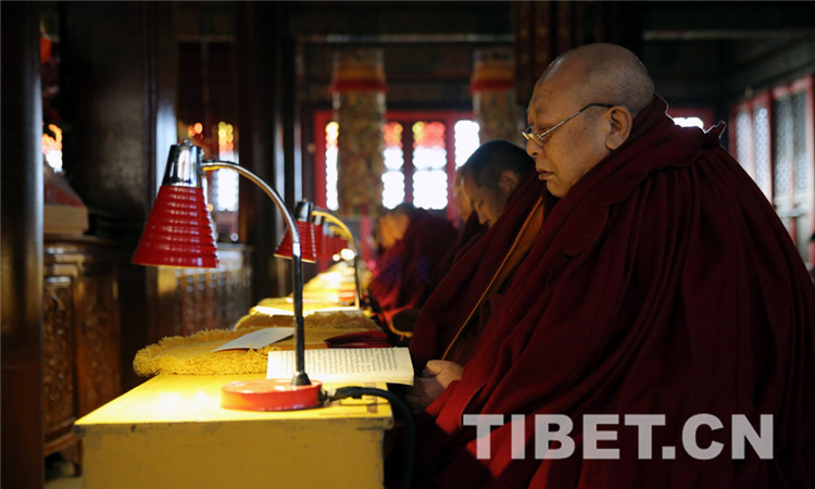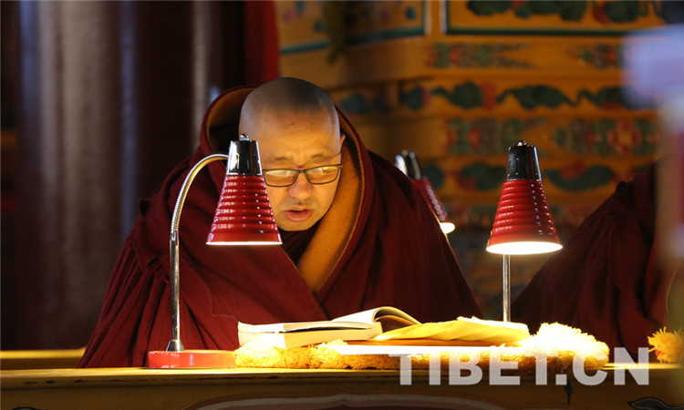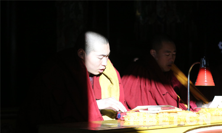图为僧人念诵经文。