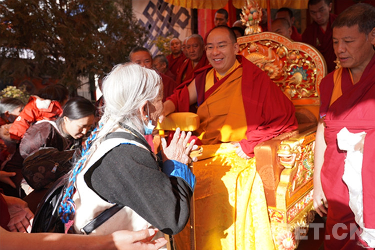中国西藏网讯 11月13日至14日,全国政协常委、中国佛教协会副会长、中国佛协西藏分会会长班禅额尔德尼•确吉杰布在西藏日喀则市扎什伦布寺多加大院为信教群众摸顶赐福,这是近年来规模最大的一次班禅摸顶赐福活动。图为班禅摸顶赐福 摄影:王淑(中国西藏网 记者/王淑 贾华加)