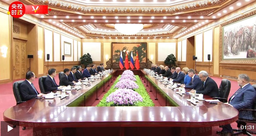 米舒斯京说:“尊敬的习近平主席,我想给您转达普京总统的热情问候和最良好的祝愿。我要祝贺中方成功举行二十届四中全会,我相信会议所拟定的未来5年的战略任务,将来一定会顺利完成。我和政府全体人员将落实您和普京总统所达成的重要共识。”
