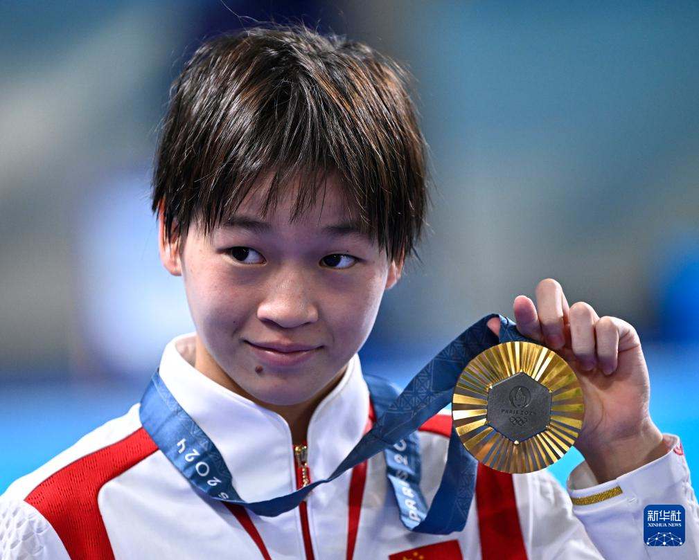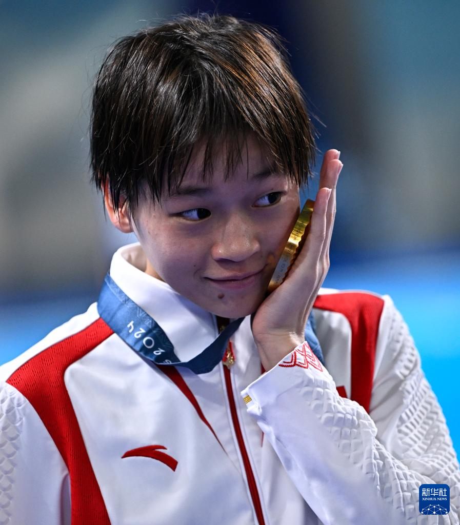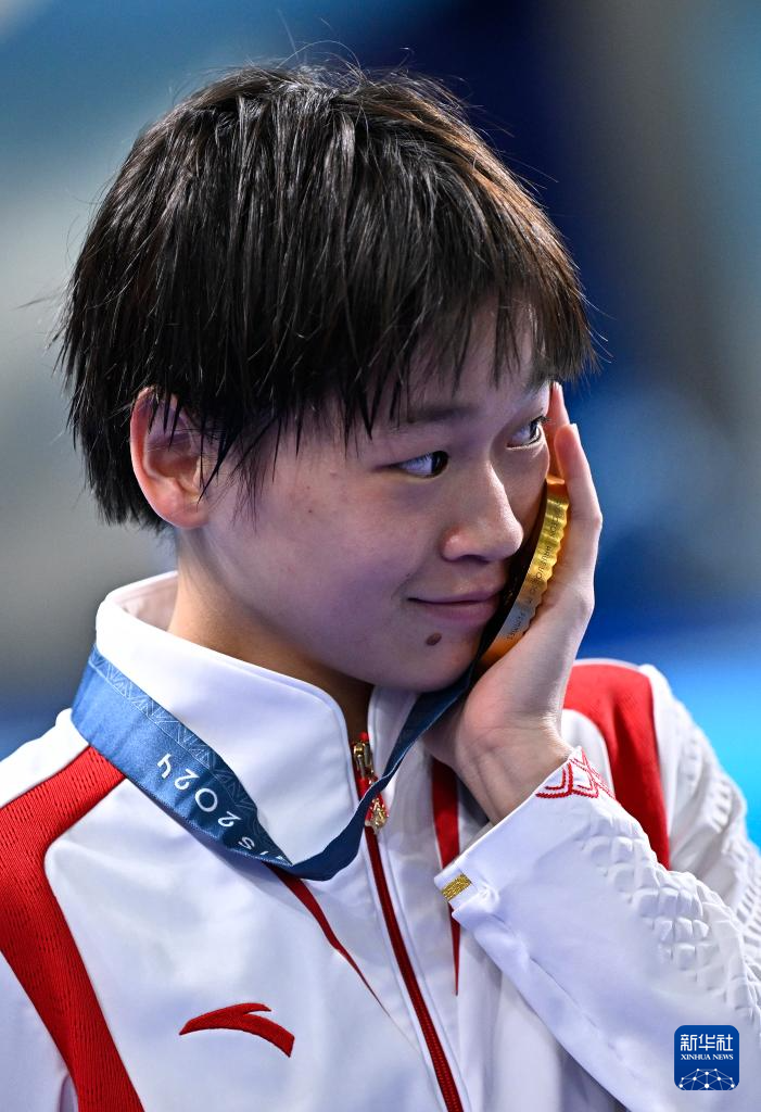 8月6日,全红婵在颁奖仪式后。新华社记者 王鹏 摄