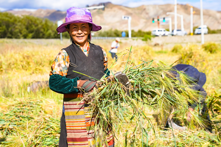 丰收的秋日一片繁忙,一户户农家正在田间地头抢抓农时。守护好人民群众的“米袋子”,当好维护国家粮食安全“压舱石”,日喀则的好“丰”景为西藏乡村振兴注入源源不断的动力。(中国西藏网 记者/王淑 赵振宇)