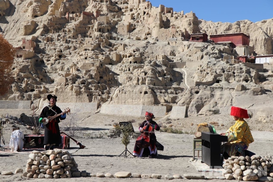 中国西藏网讯 11月9日,“格玛扎西群觉:古格声声!自然音乐会”在西藏自治区阿里地区札达县古格王朝都城遗址公园举行。