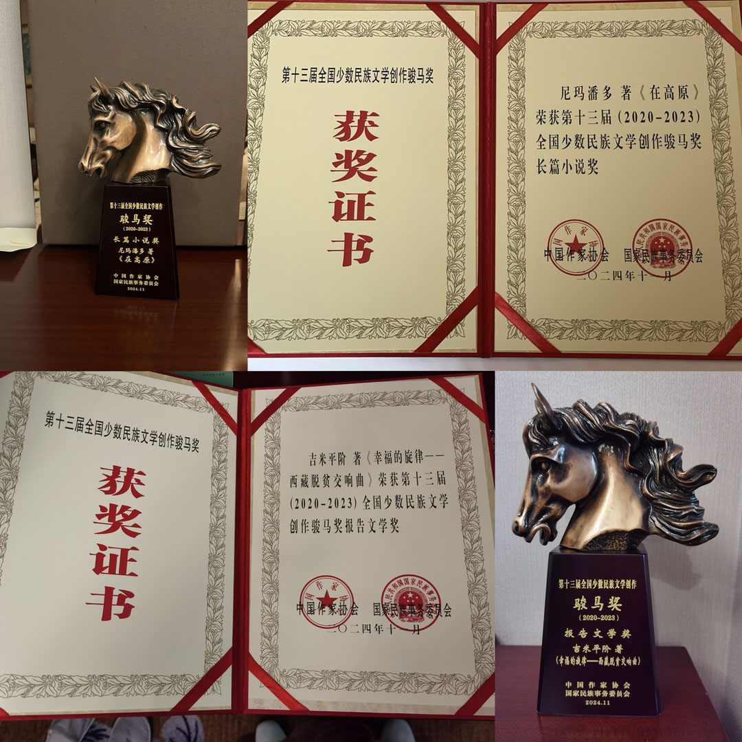 其中,藏族作家尼玛潘多的《在高原》获第十三届全国少数民族文学创作骏马奖长篇小说奖;吉米平阶的《幸福的旋律——西藏脱贫交响曲》获第十三届全国少数民族文学创作骏马奖报告文学奖;王小忠的《兄弟记》获第十三届全国少数民族文学创作骏马奖散文奖;那萨的《留在纸上的心》获第十三届全国少数民族文学创作骏马奖诗歌奖;赵有年获第十三届全国少数民族文学创作骏马奖翻译奖。