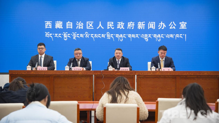 图为西藏自治区新闻发布会现场 摄影:赵振宇