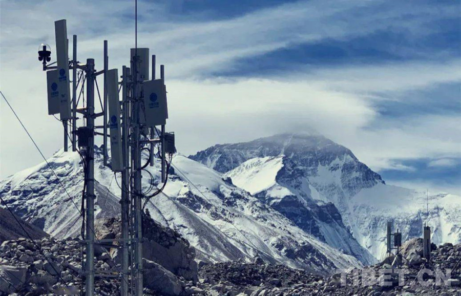 图为2024年4月24日,西藏移动公司联合华为公司在珠穆朗玛峰区域开通首个5G-A基站,标志着世界最高峰区域迈步进入了5G-A时代。 图片由西藏自治区通信管理局提供