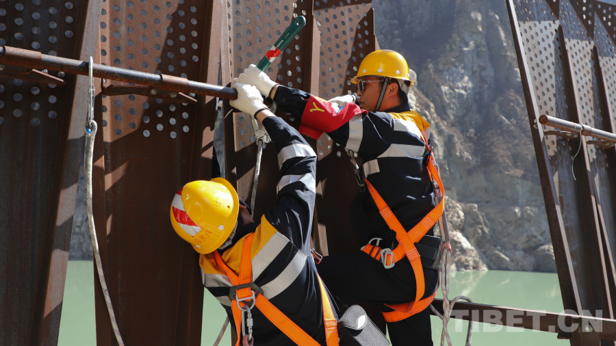 加查路桥维修工区职工们在藏木特大桥上作业 摄影:贾华加