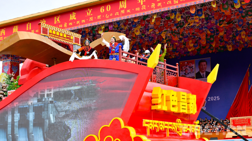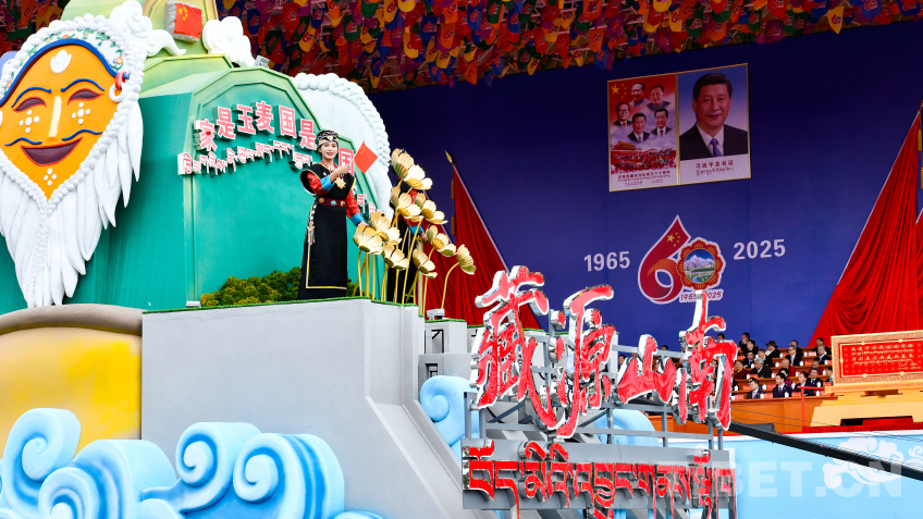 “走向未来”彩车,整体呈现数字“60”字样,车身造型融入华表、红色飘带、中国结等元素,彰显了西藏各族干部群众奋进新征程、建设团结富裕文明和谐美丽的社会主义现代化新西藏的信心和决心。(中国西藏网 记者/王淑 赵振宇 德吉卓玛 次旦拉姆 旦曲 贾华加 赵钊 姚浩然 刘莉 边子捷 冯重霖 杨眉笑)