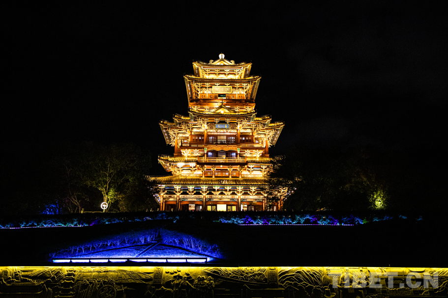 图为位于丽水瓯江之畔的应星楼夜景 摄影:龙真多吉