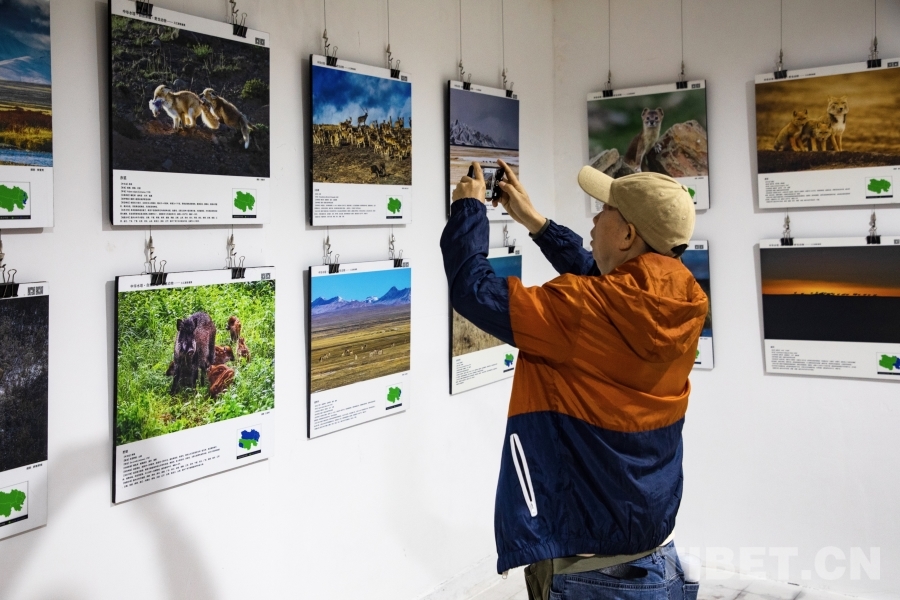 图为《江河源》那曲市摄影艺术展展厅中的部分展览作品 摄影:龙真多吉
