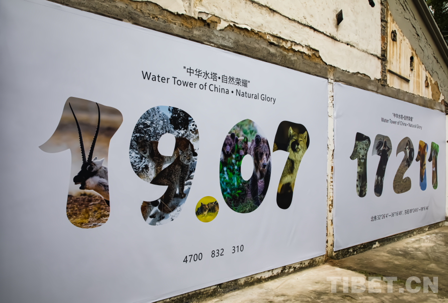 图为设计有三江源国家公园19.07万平方千米、832种野生种子植物、310种野生脊椎动物,以及国家公园地理经纬度、17211户农牧民等元素的宣传海报 摄影:龙真多吉