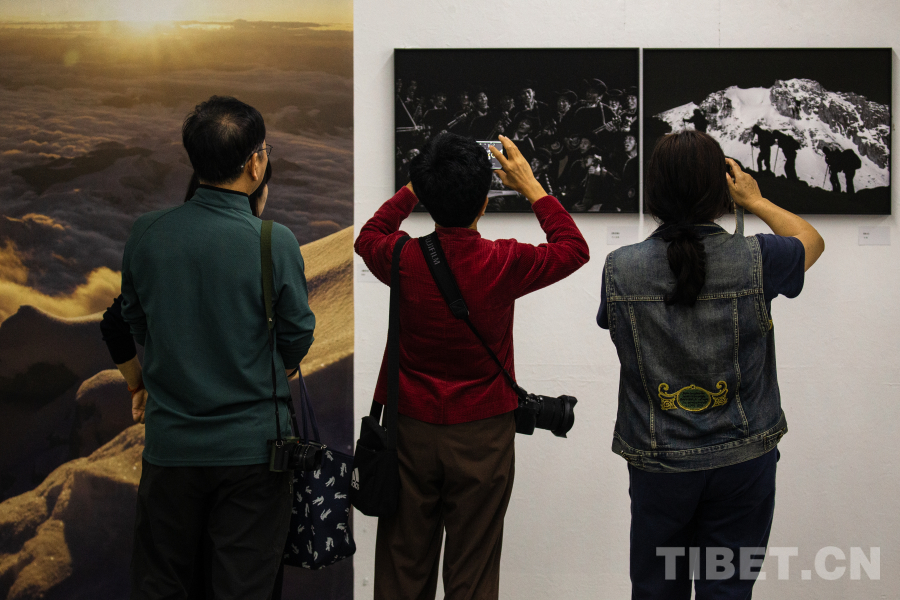 图为观众观展“极地影像——西藏摄影精品展 摄影:龙真多吉