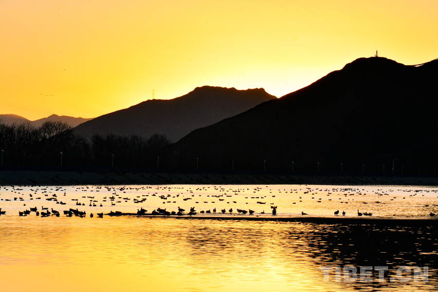 图为拉萨市林周县卡孜水库内大批越冬候鸟在此觅食休憩(摄于11月23日)摄影:赵振宇