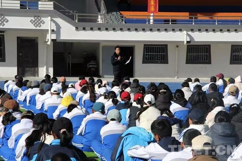 图为拉萨市公安局民警在校园进行法治宣讲(拉萨市公安局供图)