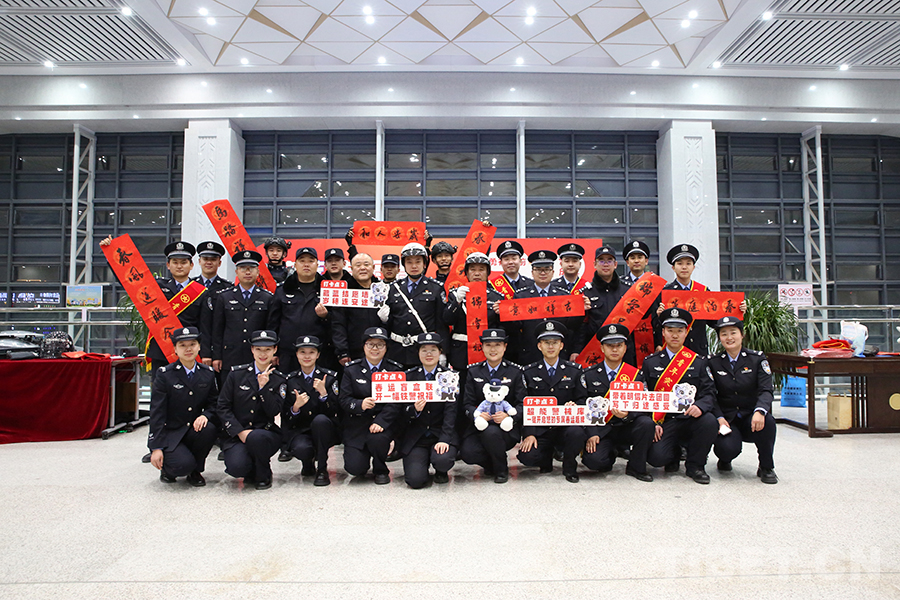 图为春运期间,青藏铁警在格尔木站候车厅开展情暖回家路活动