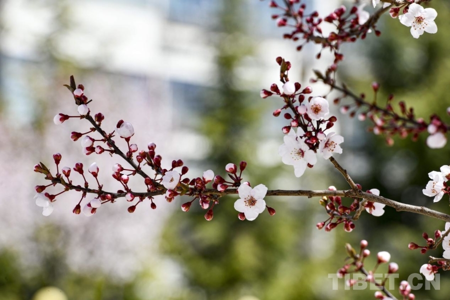 西藏拉萨慈松塘中路盛开的桃花 摄影:赵振宇