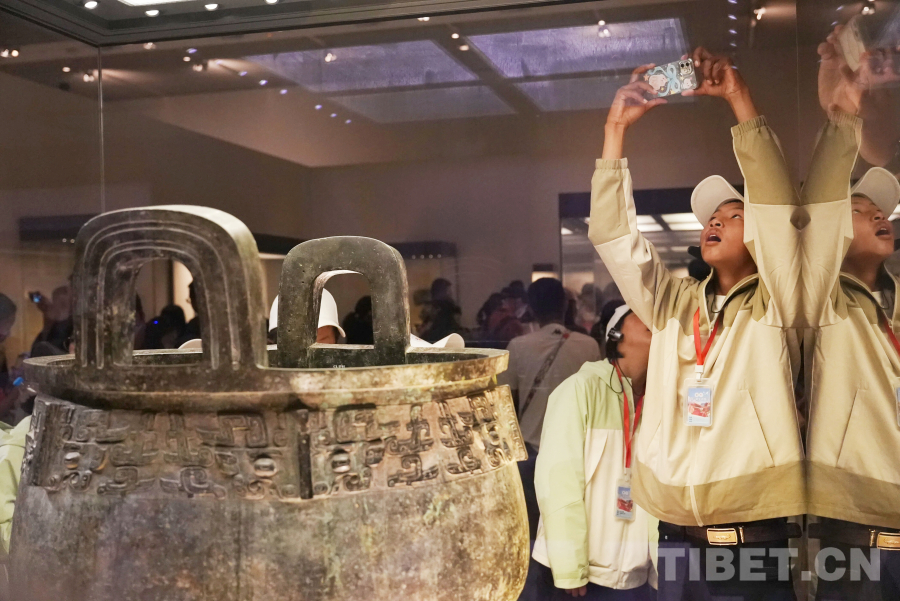 错那学生丹增洛桑在国家博物馆内拍摄文物“盂”青铜鼎