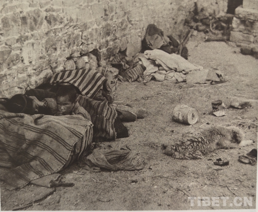 西藏民主改革前,流浪拉萨街头的农奴。摄影:陈宗烈