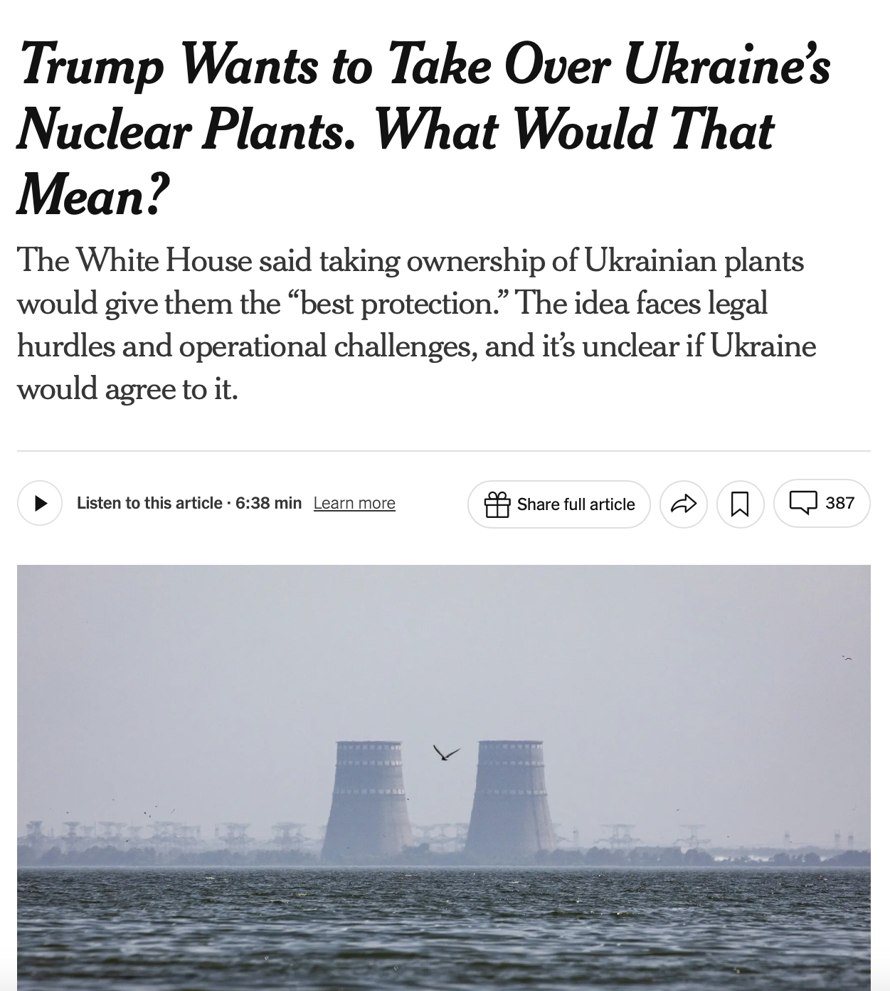美国能源部长克里斯·赖特也说,如果有助于实现停火并结束俄乌冲突,美国已准备好介入运营乌克兰核电站。