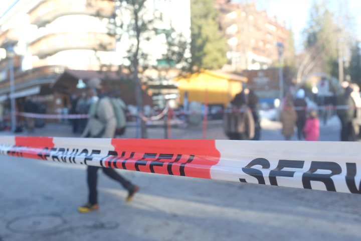 1月1日,在瑞士克朗-蒙大拿,警方在发生火灾的酒吧附近区域拉起警戒线。新华社发(周玓珞摄)