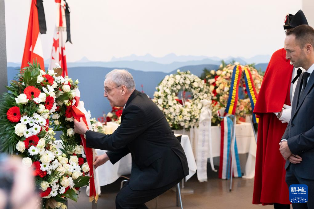 1月9日,在瑞士瓦莱州马蒂尼,瑞士联邦主席帕姆兰参加官方悼念仪式。新华社发(瑞士瓦莱州政府供图)