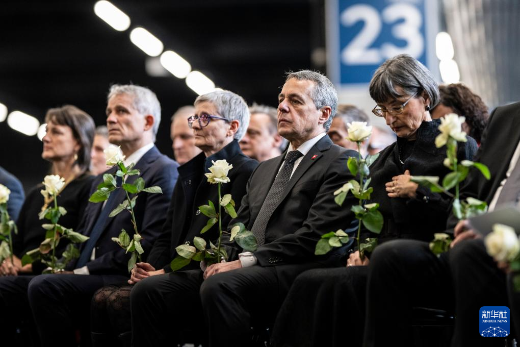 1月9日,在瑞士瓦莱州马蒂尼,瑞士外长卡西斯(右二)参加官方悼念仪式。新华社发(路易·达塞尔博纳摄)