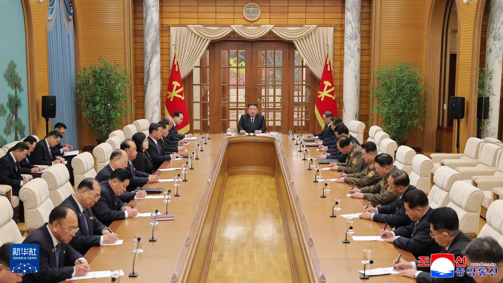 这张朝中社提供的照片显示的是朝鲜劳动党中央委员会政治局会议现场。新华社/朝中社