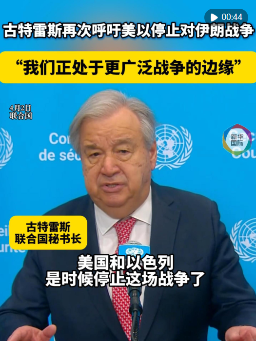 联合国秘书长古特雷斯2日对媒体发表讲话,再次呼吁美国和以色列停止针对伊朗的战争,同时呼吁伊朗停止攻击邻国。