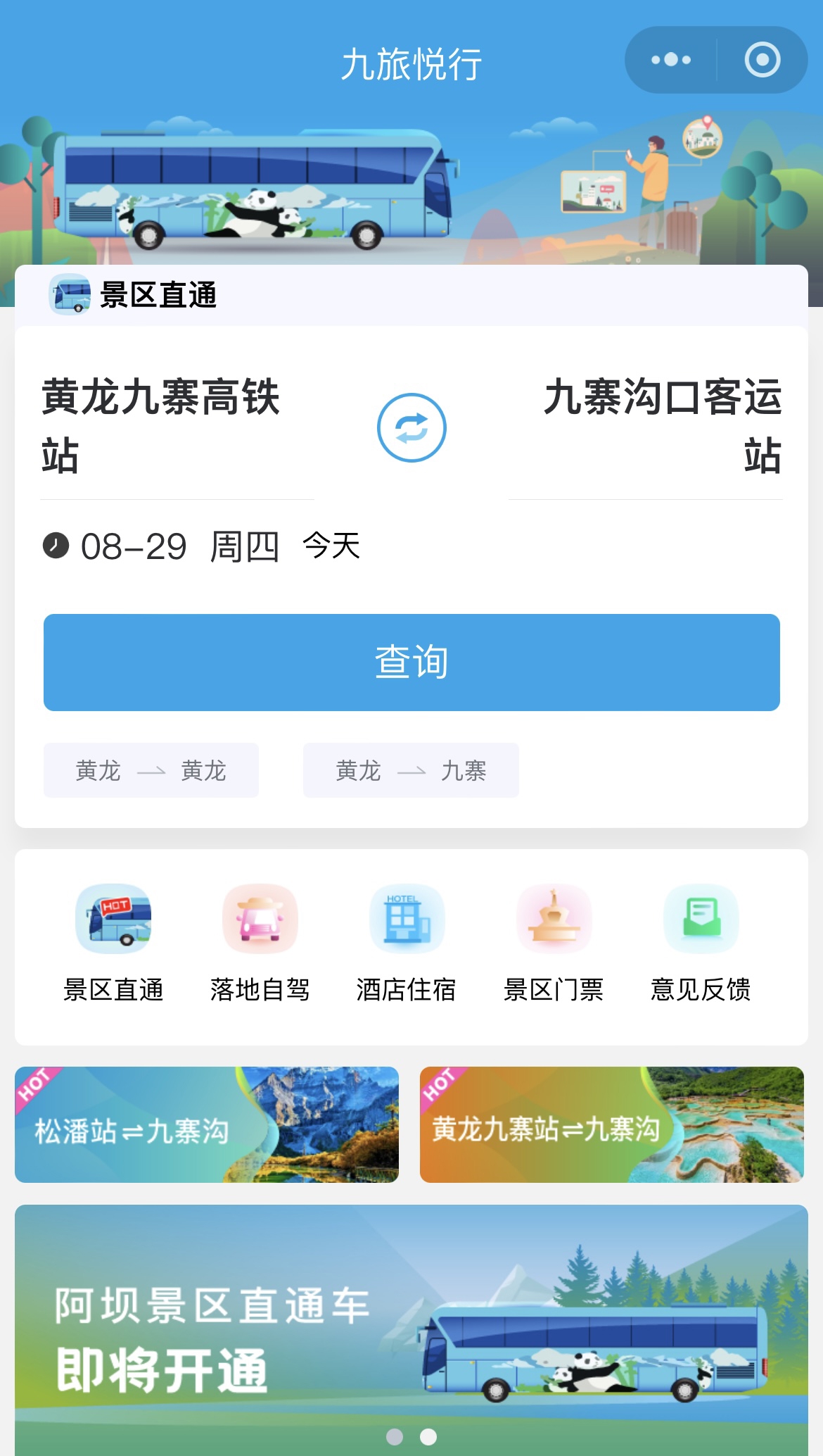 黄龙九寨站外景区直通车已就绪。