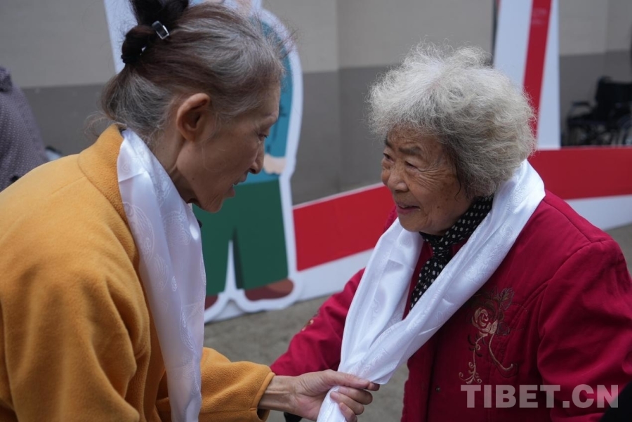 图为参会嘉宾向到会的离退休老干部及亲属敬献哈达