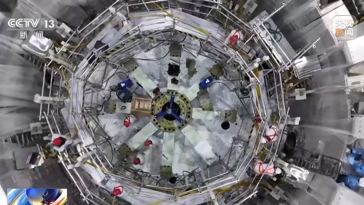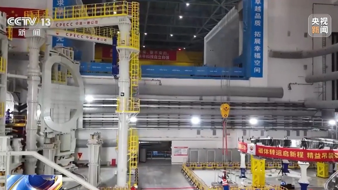 核聚变能具有原料近乎无限、清洁环保、安全性高的突出优势,1升海水中提取的氘,通过核聚变释放能量,相当于300升汽油完全燃烧释放能量。想要实现可控核聚变,需要在上亿摄氏度的高温下,长时间稳定约束等离子体,这也是全球科研人员持续攻关的核心难题。在合肥未来大科学城,燃烧等离子体实验超导托卡马克装置主机正在加紧安装。