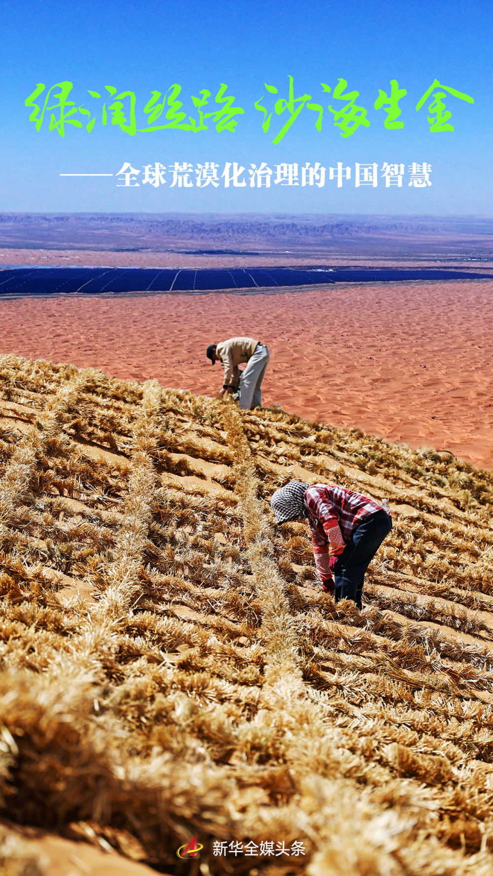 在共建“一带一路”倡议下,中国治沙理念和方案,正在积极推动世界防治荒漠化进程:在蒙古国,中国专家积极参与“种植十亿棵树”计划,帮助当地建设生态保护与修复示范区;在沙特阿拉伯,中国光伏治沙模式为当地沙漠治理和能源转型提供新思路;在撒哈拉沙漠南缘,中国“三北”工程的实践经验已成功运用到非洲“绿色长城”建设中……