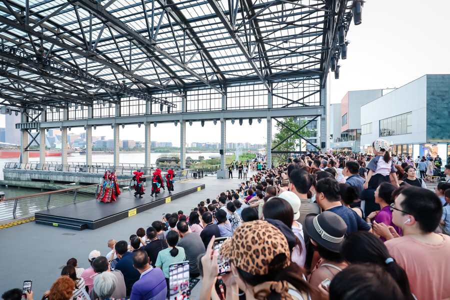 除了中秋夜的专场盛会,双节期间,萨迦古城艺术团还带着非遗歌舞在徐汇多场快闪,让雪域声韵融入申城的烟火日常。在徐汇西岸梦中心船坞,傍晚时分,《吉祥索舞》《扎西岗谐热》的灵动舞姿如约而至,与黄浦江的江涛相映,让秋风里多了份雪域的鲜活;夜幕降临后,船坞北侧亲水平台响起《回到拉萨》的熟悉旋律,歌声伴着江涛与外滩的钟声遥相和鸣,成了双节里随处可见的“文旅共鸣”。