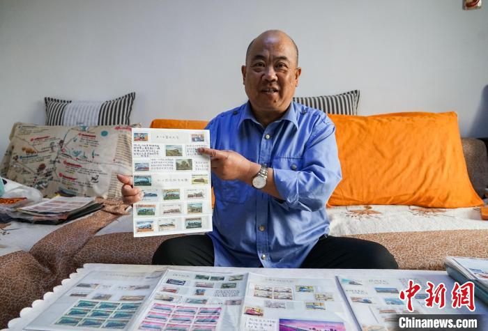 图为徐超展示其收藏的不同国家的铁路邮票。 马铭言 摄