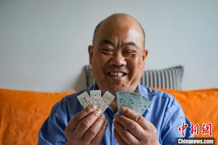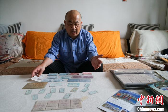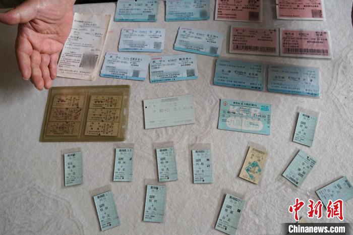 图为徐超展示其收藏的不同年代的铁路车票。 马铭言 摄