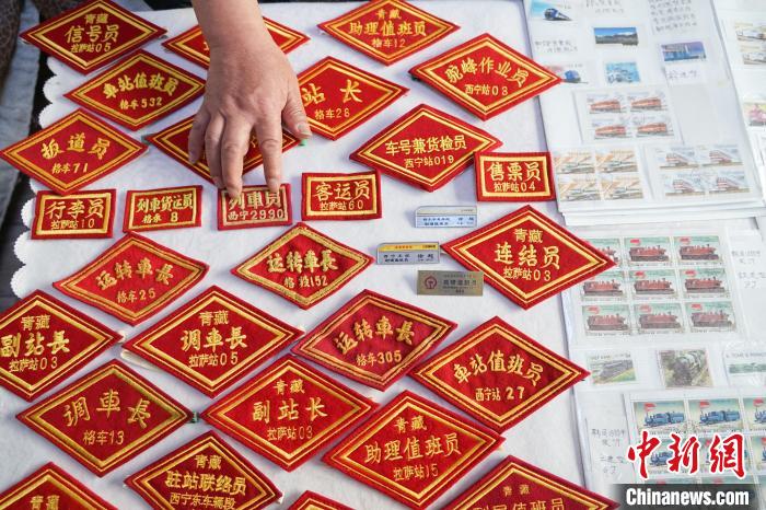 5月29日,青海西宁,徐超展示收藏的不同年代的铁路臂章、胸牌。56岁的徐超是中国铁路青藏集团有限公司西宁车站的一名客运员,40年间,他收藏了不同年代的邮票、臂章、车票、信封等近万件铁路“老物件”,其中不乏香港、台湾铁路车票,以及外国铁路邮票等。闲暇时,徐超会将藏品分享到社交平台,与志同道合的朋友交流。徐超说,作为铁路工作者,希望通过“老物件”让更多人了解铁路事业的发展,最大限度发挥其价值。