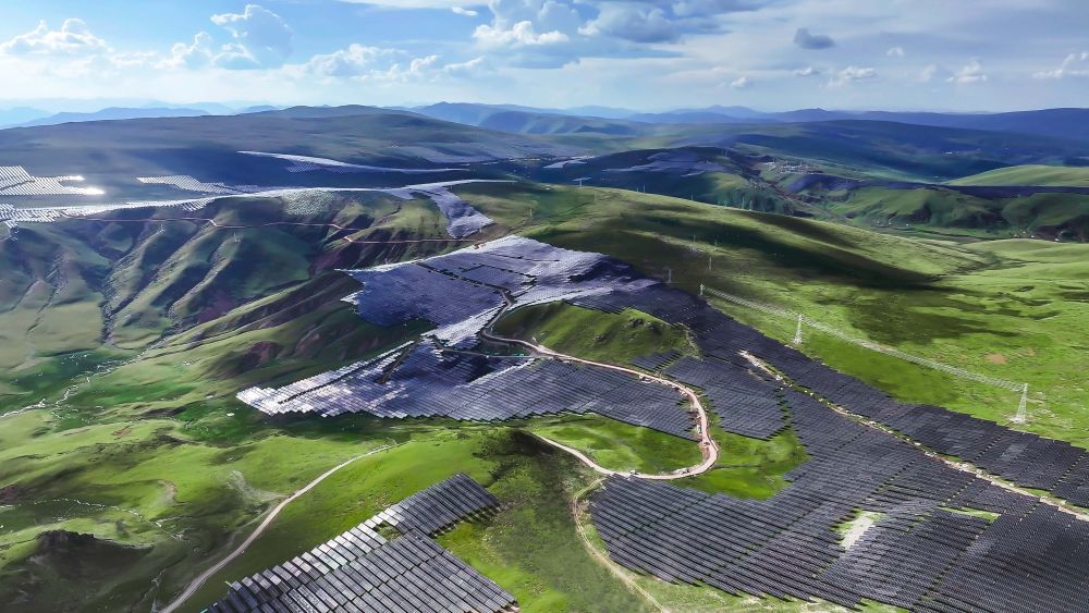 50公里外,海拔4600米的扎拉托桑山上,超过200万片光伏板覆盖群山、随势起伏。这是全球最大、海拔最高的水光互补电站——柯拉光伏电站,其规划装机容量达3吉瓦,生产的电能通过500千伏输电线路接入两河口水电站。