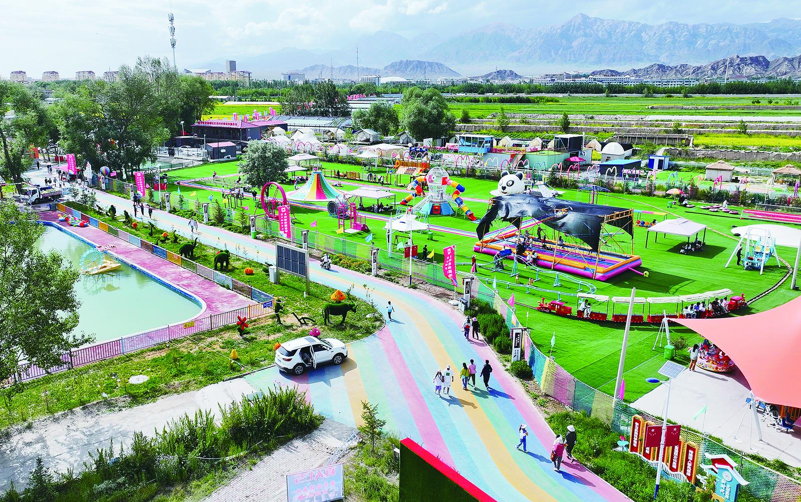 在德令哈市区近郊的红光村田园综合体,色彩艳丽的田园彩虹村道,丰富多样的亲子娱乐设施,整齐划一的温室采摘大棚,还有烧烤露营地和新建的民宿餐饮四合院……红光村党支部书记刘四军介绍,眼前这片欣欣向荣的地方其实原先是村民的宅基地。“搬迁到小区后,这里就闲置了。我们通过盘活闲置资源,修建起田园综合体,不仅实现了村民、村集体双增收,也让村里环境焕然一新。”刘四军说。