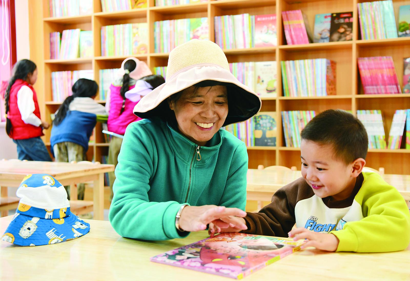农牧民搬进小区,在社区阅读中心阅读。李庆玲 摄