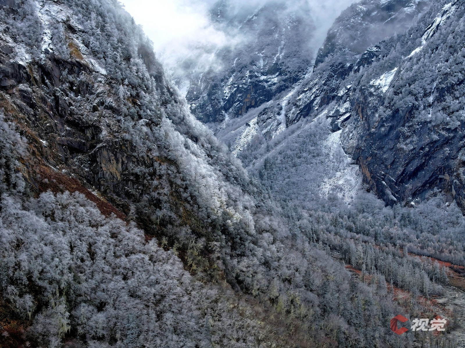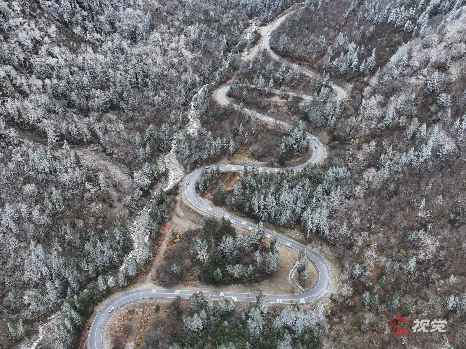 11月17日,俯瞰初冬时节的理小路,宛如一个童话世界。