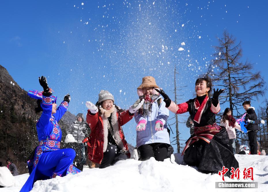 图为游客在雪地里玩雪。中新社记者 安源 摄
