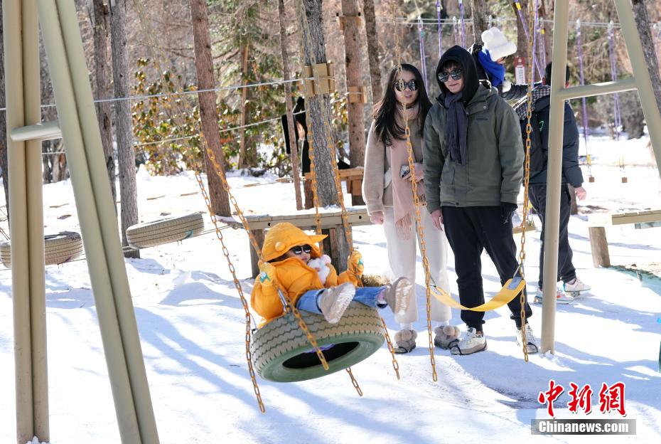 图为小朋友在雪地里玩秋千。中新社记者 安源 摄