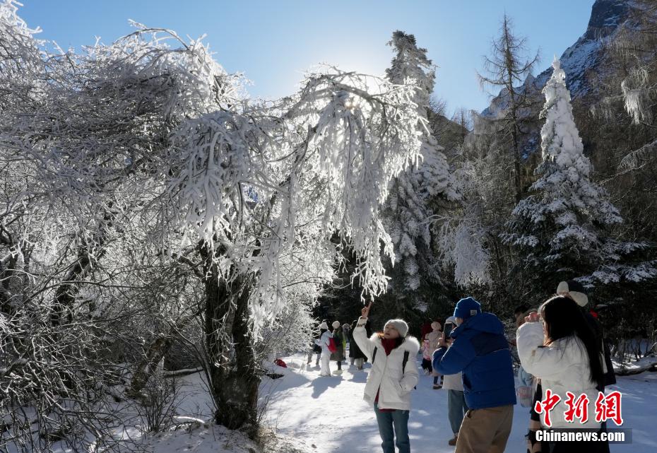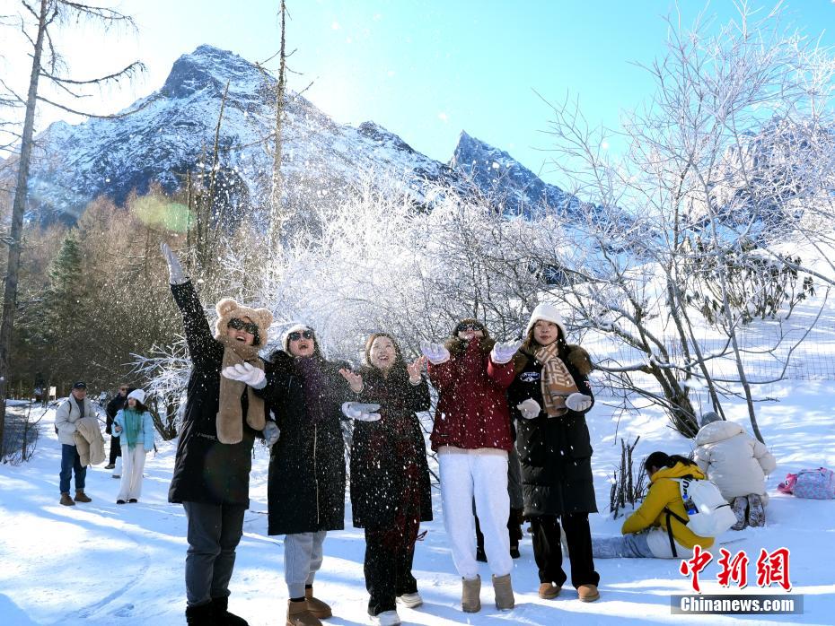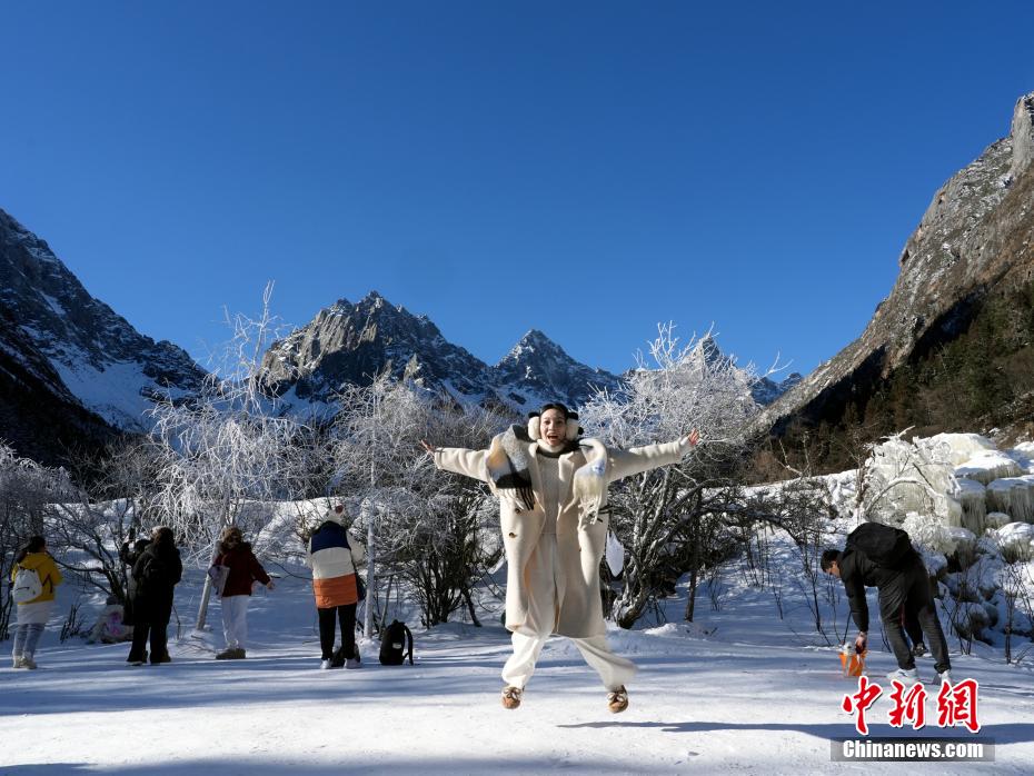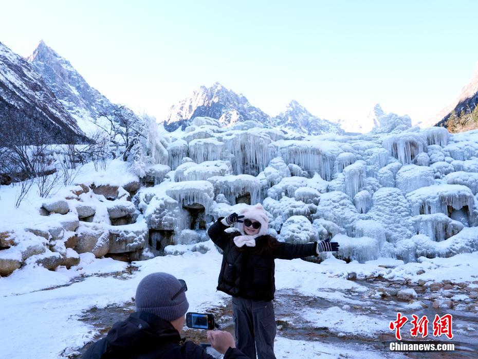 12月15日,在位于四川省阿坝州理县的毕棚沟景区冰雪世界吸引游人乐享冰雪的魅力。