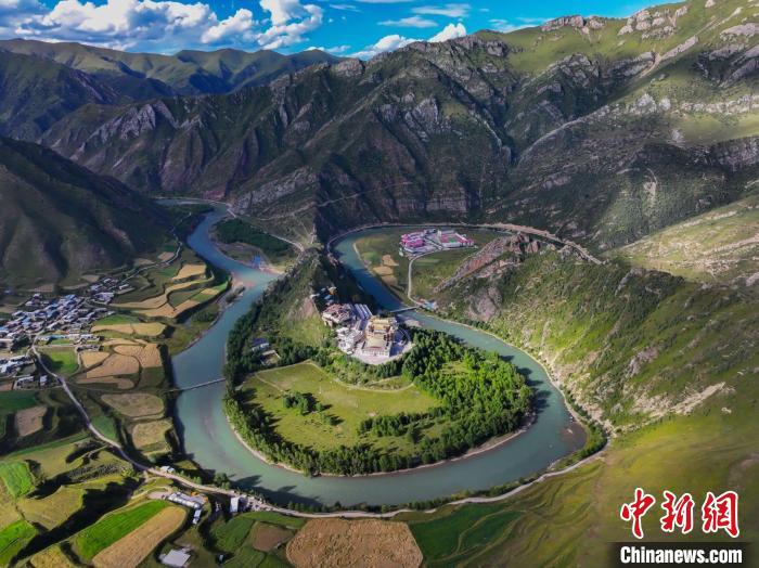 资料图为航拍玉树州澜沧江东源孜曲。马铭言 摄