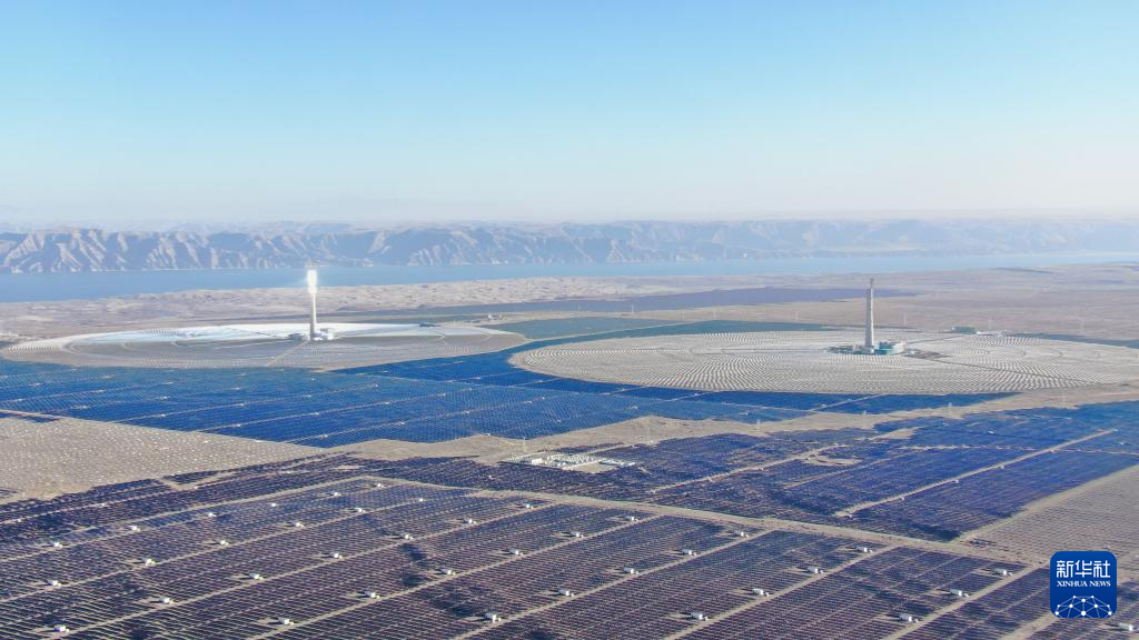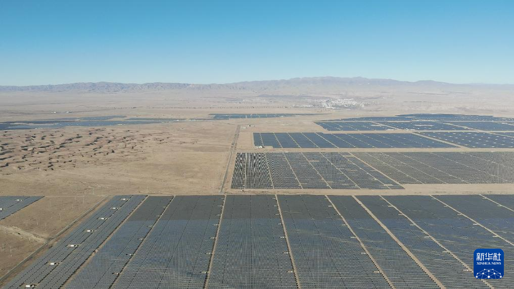 这是1月15日在青海省海南藏族自治州共和县塔拉滩绿色产业发展园区拍摄的光伏电站(无人机照片)。新华社记者 王梓涵 摄
