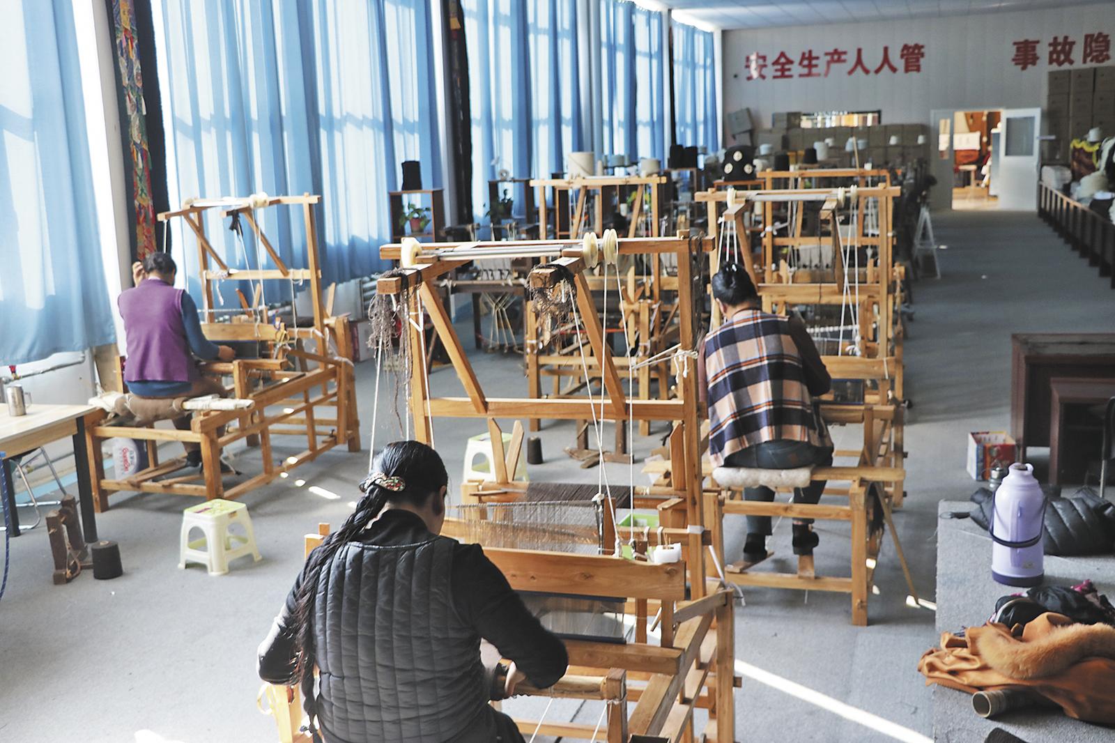 “阿姐,你说得太对啦!”藏族姑娘白玛曲珍停下手中飞舞的梭子应和着。